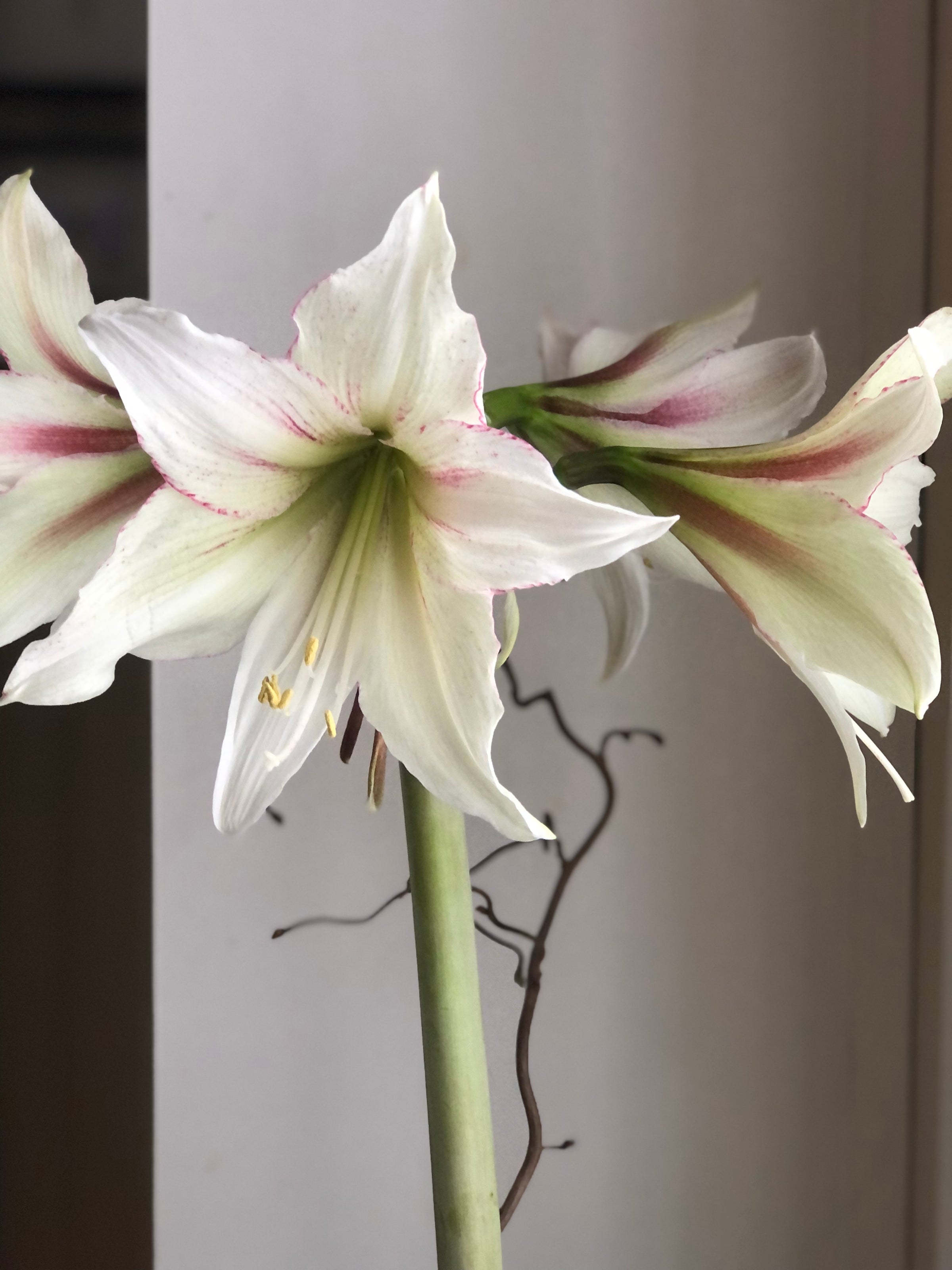 Kanskje ikke en klassisk amaryllis som du ser for deg til jul, og kanskje er det akkurat derfor den rager høyt hos oss.